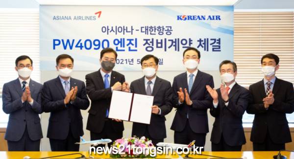 대한항공은 5월 12일 오후 서울시 강서구 아시아나항공 본사에서 이수근 대한항공 Operation 부문 부사장, 진종섭 아시아나 전략기획본부장 등 양사 관계자들이 참석한 가운데 2억 6000만 달러 규모의 아시아나항공 보유 프랫앤휘트니 PW4090 엔진 22대에 대한 정비 계약을 체결했다.