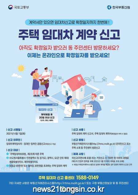 신고는 임대한 주택의 관할 동 주민센터를 방문하거나 온라인 ‘부동산거래관리시스템’(rtms.molit.go.kr)에서 할 수 있다. 집주인과 세입자가 공동으로 서명·날인한 임대차 계약신고서를 제출하면 된다. 임대차 계약서 원본 제출 시 한명만 신고해도 공동신고로 간주되며 확정일자도 자동 부여된다.
