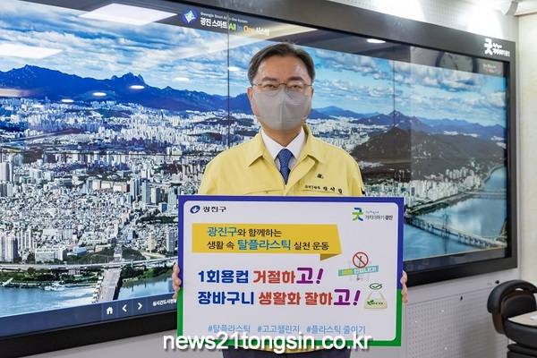김선갑 광진구청장이 1일 생활 속 일회용품과 플라스틱 줄이기 실천을 위한 ‘탈 플라스틱 고!고! 챌린지’ 시즌2에 동참했다.