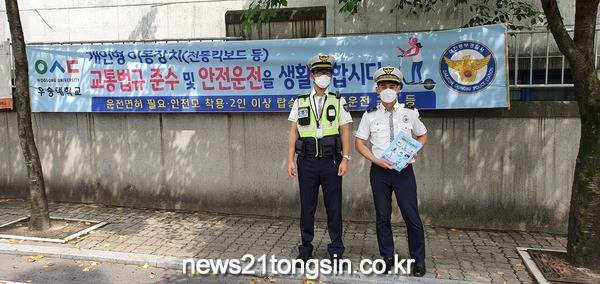 대전동부경찰서(서장 이교동)는 최근 사용자가 많아진 개인형 이동장치(PM, Personal Mobility)에 대해 6월 1일~3일(3일간) 개인형 이동장치 이용이 빈번한 관내 대학교에서 전단지 배부와 더불어 개인형이동장치 운전자에 대한 계도 및 교통안전교육을 통한 교통안전홍보 활동을 펼쳤다.