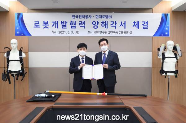 현대로템은 3일 대전에 있는 한전 전력연구원에서 한전과 ‘전력 분야 공사작업자 안전 및 근력보강용 로봇 개발’에 대한 업무협력 양해각서(MOU)를 체결했다고 4일 밝혔다.