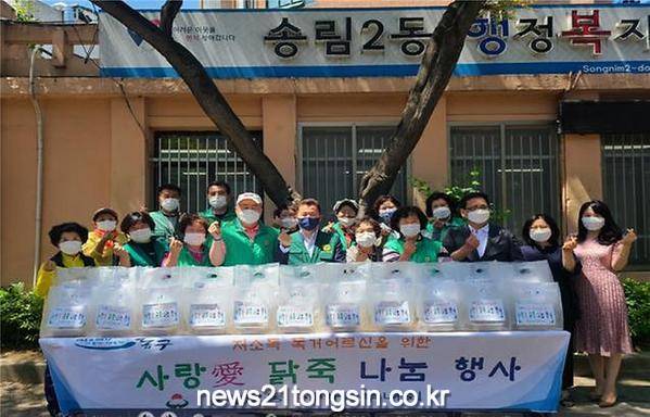 동구 송림 2동 새마을부녀회(회장 강임숙)는 본격적인 무더위가 시작되는 6월을 맞아 저소득 독거어르신들의 건강한 여름나기를 위한 ‘사랑愛 닭죽 나눔 행사’를 마련했다.