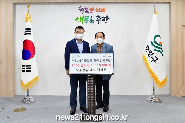 중랑구(구청장 류경기)는 7일 시우산업 김남훈 대표로부터 코로나19 극복을 위한 KF94 마스크 10,000장(금 506만 원 상당)을 전달받았다고 밝혔다.
