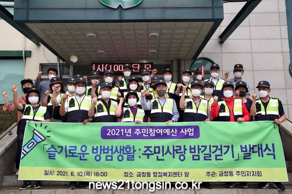 인천 동구 금창동 주민자치회 주민자치운영분과(분과장 강원주)는 지난 10일 2021년 시 주민참여예산 주민주도형 사업인 <슬기로운 방범생활 : 주민사랑 밤길걷기 발대식>을 개최했다.