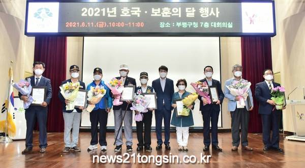 부평구(구청장 차준택)는 11일 구청 대회의실에서 6월 호국·보훈의 달을 기념하고 순국선열 및 호국영령을 추모하기 위해 ‘2021년 호국·보훈의 달 행사’를 진행했다.