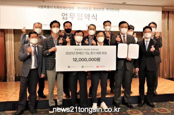 롯데는 이날 협약식에서 이달 28일부터 30일까지 3일간 열리는 ‘2021년 장애인기능경기대회’의 성공적인 개최를 위해 후원금 1200만원을 전달했다.