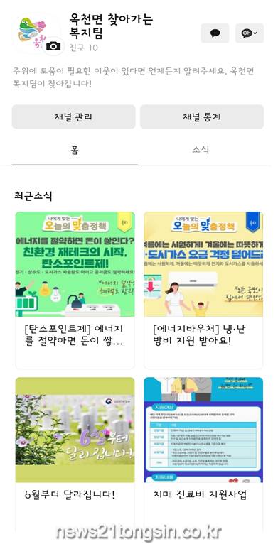 김용옥 옥천면장은 “촘촘한 인적안전망 구축으로 복지 사각지대가 없이 모두가 함께 웃는 옥천면을 만들기 위해 ‘옥천면 찾아가는 복지팀’ 카카오채널이 활발히 이용되길 기대한다”고 말했다.
