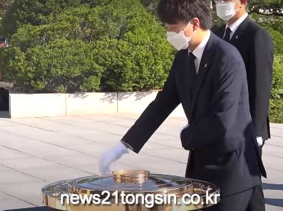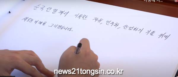 이날 이 대표는 방명록에 "순국선열께서 이룩한 자유, 민주화, 산업화의 기틀 위에 새로운 미래를 그리겠습니다"라고 적었다.