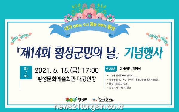 횡성군(군수 장신상)은 제14회 횡성군민의 날 기념행사를 오는 18일 오후 5시부터 횡성문화예술회관에서 개최한다고 밝혔다.