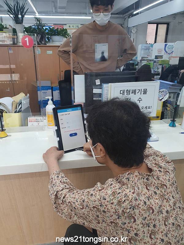 최근 강조되고 있는 개인정보 보안과 관련해, 구민이 동주민센터 방문 신청 시 종이에 작성하는 대신 테블릿으로 대형폐기물 처리 신청을 진행하도록 해 혹시 모를 개인정보 유출 가능성을 차단하고자 추진된 방안이다.
