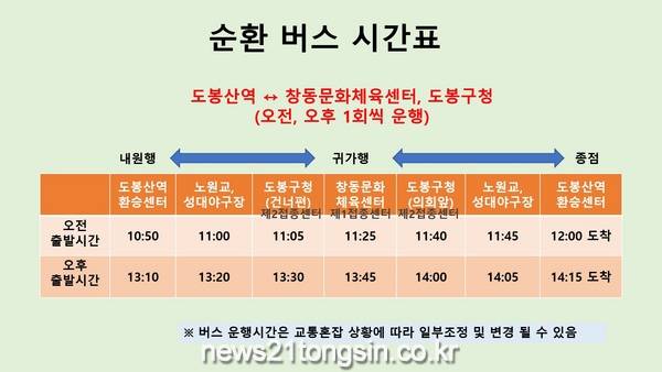 도봉구(구청장 이동진)가 오는 6월 17일부터 도봉구 코로나19 예방접종센터에서 접종을 실시하는 주민을 대상으로 ‘내방·귀가 순환버스’를 운행한다고 밝혔다.