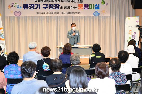 중랑구(구청장 류경기)는 19일 방정환교육지원센터에서 인근 아파트에 거주하는 학부모, 입주자대표회의 등 주민 70여명을 대상으로 제76회 중랑마실을 개최했다고 밝혔다.