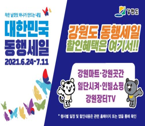 이에, 강원도에서는 6. 22.(화) ~ 7. 15.(목)까지 24일간 도내 소비진작 및 경기 활성화를 위해 비대면·온라인 중심의 유통 트렌드를 반영하여, 온라인 기획전, 라이브커머스 등 새로운 디지털 소비촉진 방식으로 운영된다.