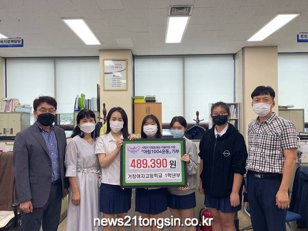 거창군은 23일 거창여자고등학교 1학년을 대표해 기탁식에 참석한 김가을, 정보리, 오명진, 김희주 학생이 양심카페 운영 수익금 489,390원을 아림1004운동 후원금으로 기탁했다고 전했다.