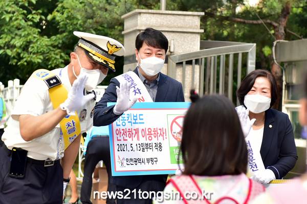 부평구(구청장 차준택)는 지난 21일과 22일 이틀에 걸쳐 상정초와 갈산초 인근 스쿨존에서 ‘2021년 제2차 민·관 공동 교통안전 캠페인’을 진행했다.