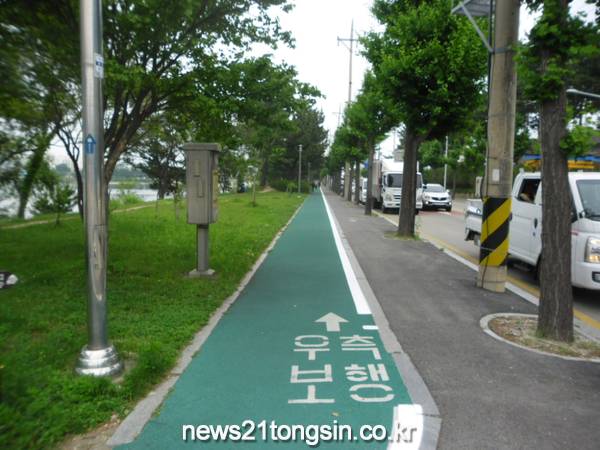 속초시가 시민들의 휴식공간으로 사용되고 있는 영랑호 유원지 내 자전거도로에 대해서 차선도색공사를 완료하였다.