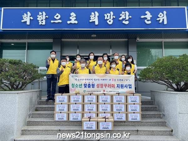 군위군 군위읍지역사회보장협의체는 지난 24일 관내 저소득층 청소년 24명에게 속옷 세트, 화장품 세트, 간식 등의 생필품으로 구성된 ‘청소년 맞춤형 성장꾸러미’를 선물하고 청소년들의 꿈을 응원했다.