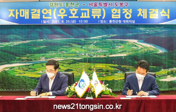 서울시 도봉구(구청장 이동진)는 강원도 홍천군(군수 허필홍)과 지난 6월 25일 우호교류 협정을 체결하고 두 도시의 공동번영과 주민복지 향상을 위해 협력하기로 했다.
