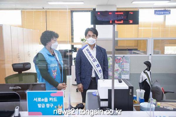 ‘일일 동장’이란 어깨띠까지 두르고 민원 청취에 나선 이재현 청장은 아라동 전입 주민에게 서로e음 카드 발급과 전입자에게 꼭 필요한 행정정보 등을 안내하는 동시에 각종 건의사항과 생활불편사항 등을 청취하며 적극 해결할 것을 약속했다.