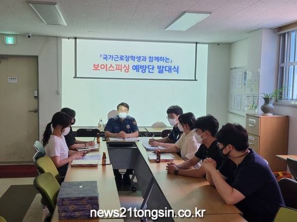 (대구=뉴스21통신) 유재원기자 = 대구중부경찰서 동덕지구대에서는 7.1(목) 09시 관내에서 일어나는 보이스피싱 예방 홍보를 위하여 ‘국가근로장학생 보이스 예방 홍보단’을 조직 운영한다.
