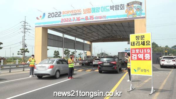 ▲ 코로나19 검역소 운영 장면보령시는 3일부터 서해안 최대 해수욕장인 대천해수욕장이 개장됨에 따라 국내 최초 체온스티커 방역시스템을 도입해 한층 더 업그레이드된 보령형 K-방역을 추진한다.