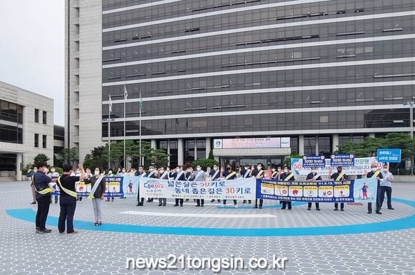 충주지역 시내버스회사는 2일 충주시청 광장에서 안전속도 5030 규정 이행 등 교통안전 정책 동참을 위한 결의대회를 가졌다.