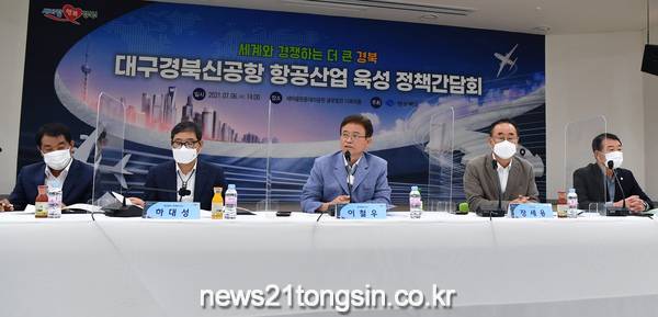 이날 정책간담회는 이철우 도지사를 비롯해 장세용 구미시장, 지역 항공관련 기업 관계자 등 50여명이 참석해 ‘대구경북신공항 항공물류 육성 방안 및 항공클러스터 조성전략’에 대한 주제발표를 듣고 경북의 항공산업 육성과 신공항이 중심이 되어 지역경제에 활력을 불러일으킬 방안 등에 대해 의견을 나누는 형식으로 진행되었다
