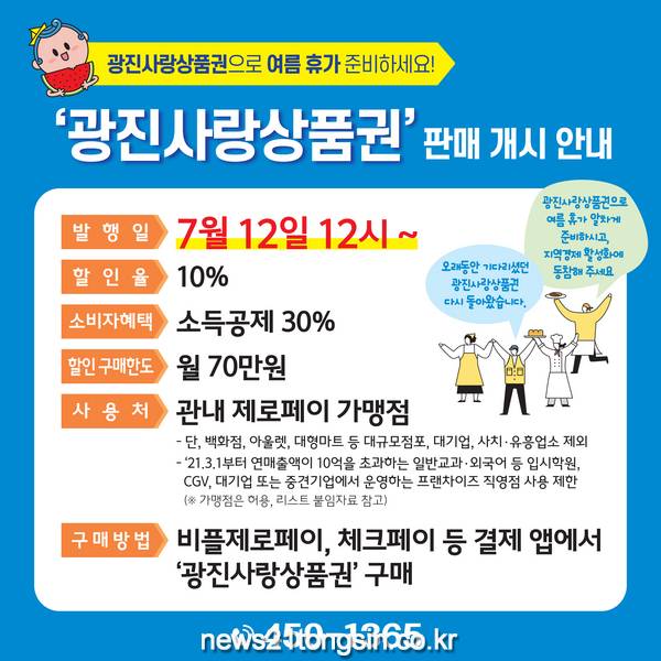 오는 12일 발행되는 하반기 광진사랑상품권 규모는 총 100억 원이며, 이후 9월 추석 무렵 100억 원을 추가 발행할 계획이다.
