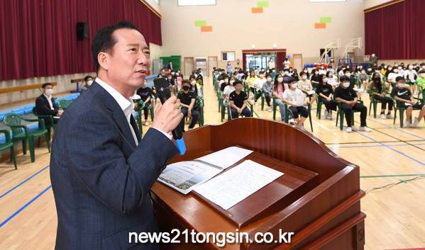구인모 거창군수는 7일 창동초등학교 체육관에서 6학년 재학생 130여 명을 대상으로 진로체험 특강을 가졌다.