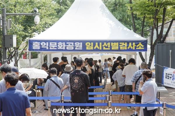 홍익대학교 앞 홍익문화공원(와우산로 21길 19-3)에 설치된 임시선별검사소는 평일 09:30~17:00, 토요일 09:30~12:00까지 운영한다. 코로나 검사를 원하는 시민이라면 증상과 관계없이 누구나 검사를 받을 수 있다.