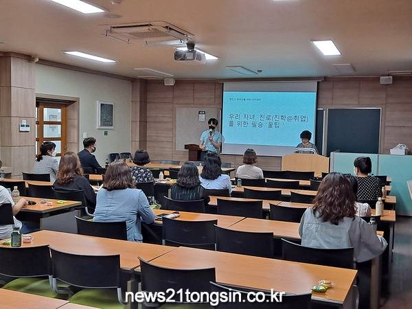명진고가 지난 9일 대회의실에서 ‘우리 자녀, 진로(진학&취업)를 위한 필승 꿀팁’을 주제로 ‘2021학년도 제2차 학부모 아카데미’를 개최했다.