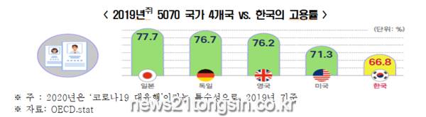 한국경제연구원(이하 한경연, 원장 권태신)인구 5천만명고용률 70% 이상 국가’(이하 5070국가)인 미국, 일본, 독일, 영국의 고용환경 특징을 분석한 결과, 5070국가 4개국은 한국보다 협력적균형적 노사관계, 낮은 고용부담 및 유연한 노동시장을 갖춘 것으로 나타났다.