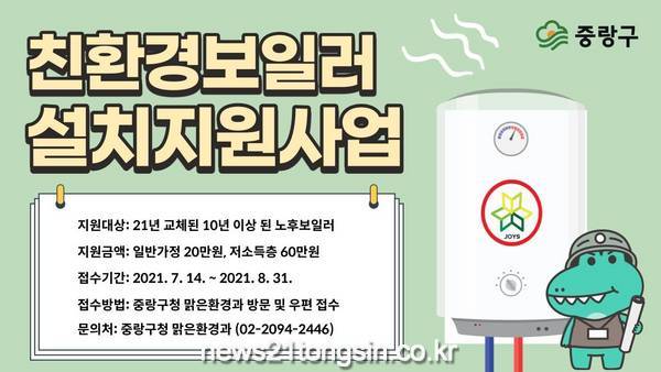 중랑구(구청장 류경기)가 오는 8월 말까지 가정용 친환경보일러 설치 보조금을 추가로 접수 받는다.