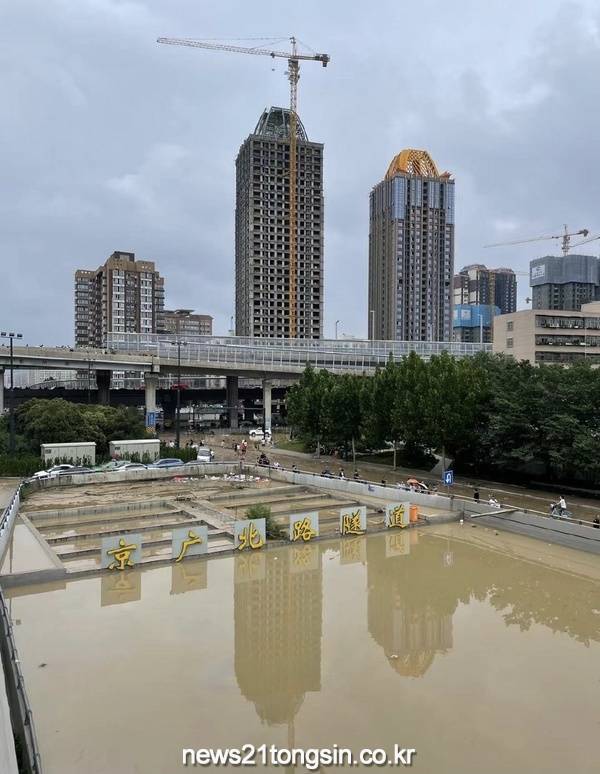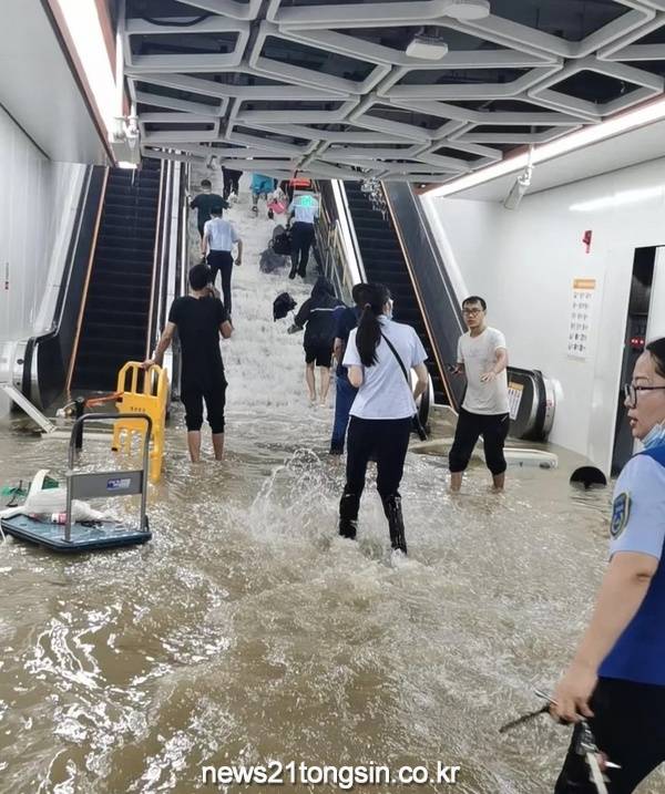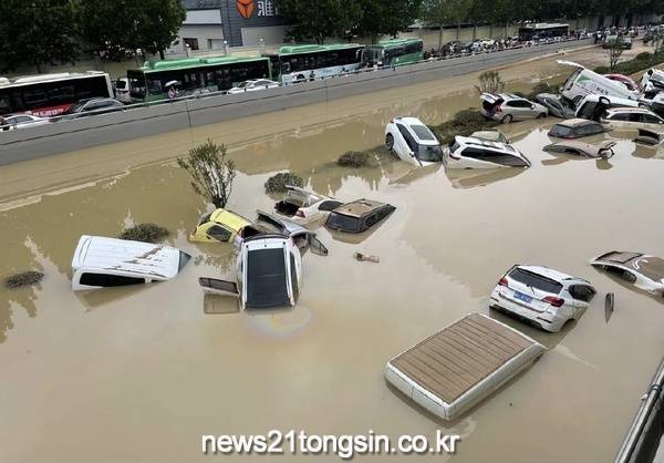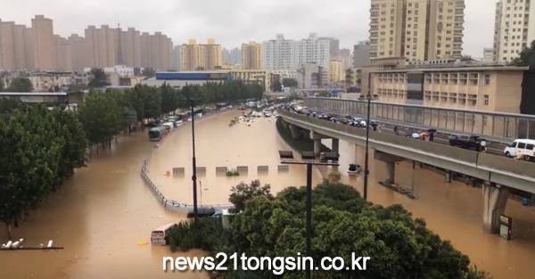 (대구=뉴스21통신) 유재원기자 = 중국 허난성에 위치한 정저우시는 연평균 강수량이 640.8mm인데 지난 17일부터 20일까지 총 강수량 617.1mm를 기록하는 예측할 수 없는 폭우로 인해 천년에 한 번 정도 내릴 만큼의 강수량을 기록하며 자연 재해 홍수 예방등급 1급으로 격상됐다.