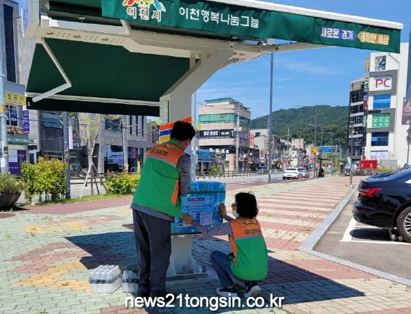 이천시(시장 엄태준)가 연일 이어지는 무더위에 지친 이천시민의 폭염피해 예방을 위하여 얼음생수를 나누는 ‘냉방물품 지원사업’을 추진하였다.