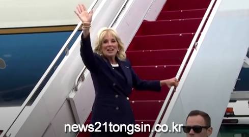 도쿄올림픽 개막식 참석을 위해 방일한 미국의 퍼스트레이디 질 바이든 여사가 22일 도쿄 요코타 공군기지에 도착했다.