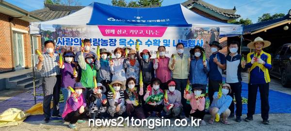 노학동 통장협의회(회장 김문득)는 29일(목) 척산마을 보람농장에서 직접 재배하여 정성껏 키워온 옥수수 3,000여개를 수확하여 관내 경로당 및 저소득층에 전달하였다.