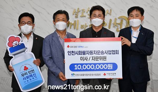 인천광역시(시장 박남춘)는 7월 30일 조택상 균형발전정무부시장, 인천시화물자동차운동사업협회(이사장 심재선), 인천사회복지공동모금회(회장 조상범)이 참석한 가운데 ‘우리 인천 사회백신 나눔 캠페인’ 성금 1,000만원을 기부했다고 밝혔다.