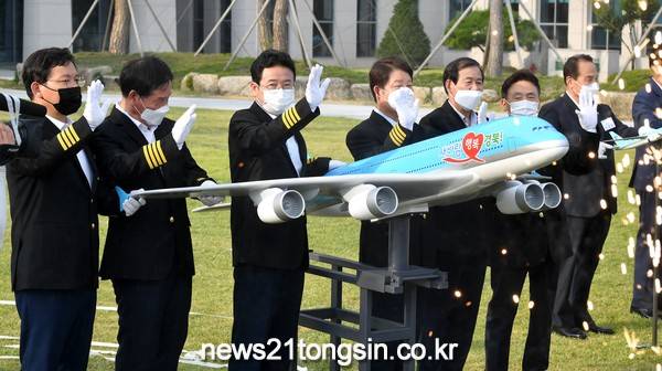 중앙에 위치한 대구경북을 상징하는 큰 비행기는 길이 2m의 크기에 본체 양면에 대구경북의 슬로건이 새겨져 있다. 좌우에는 대구경북의 31개 시군구를 상징하는 작은 비행기가 나란히 펼쳐졌으며 시장군수구청장들이 각자의 상징 모형비행기를 받침대에 올리는 퍼포먼스가 이뤄졌다.