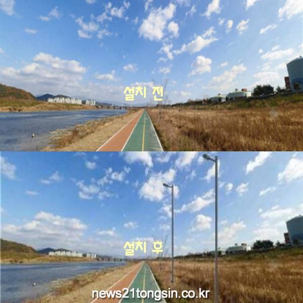 설치 시 광원으로 사용되는 LED 가로등은 기존 방전등기구에 비해 밝기 및 연색성이 높고 고장 가능성이 적어 야간 금호강변 산책로를 이용하는 시민 편의가 크게 개선될 것으로 기대된다.