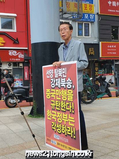 '한반도인권과통일을위한변호사모임'(한변)이 3일 서울 명동에 위치한 중국대사관 인근에서 탈북자 강제북송을 중지하라고 촉구하며 중국정부를 규탄하는 1인시위를 벌였다.