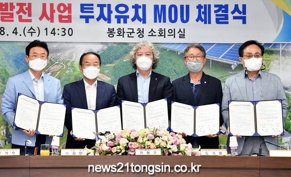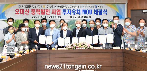 경상북도는 4일 오후 봉화군청에서 오미산풍력발전․영풍․석포면풍력발전주민협의체․봉화군 간 ‘봉화 오미산 풍력발전사업’ 투자양해각서(MOU)를 체결했다고 밝혔다.