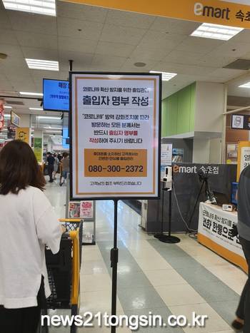 속초시가 지난달 30일부터 대형마트 등 대규모 점포 방문자에 대한 출입 명부 작성 및 관리가 추가된 방역수칙이 적용됨에 따라 관내 대형마트의 방역수칙 이행사항을 점검한다.