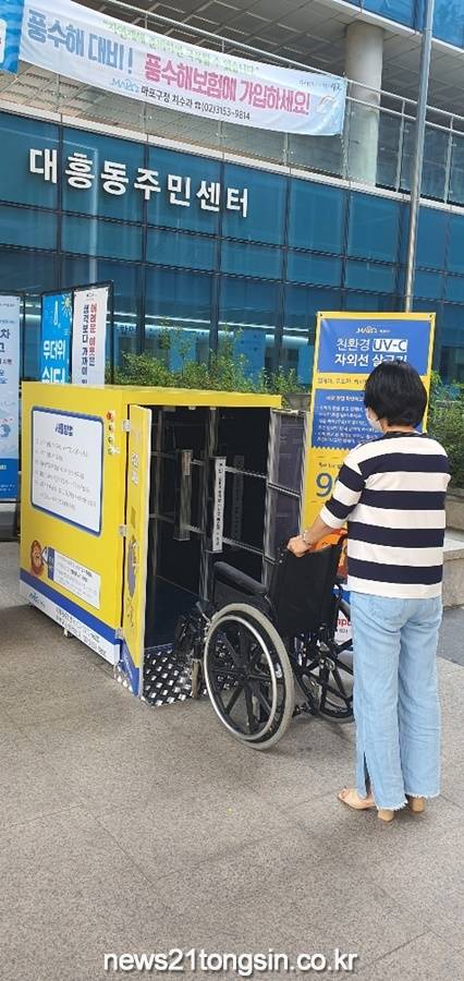 마포구(구청장 유동균)가 대흥동주민센터(신촌로26길 10)와 마포장애인종합복지관(성산로4길 35)에 ‘유모차‧휠체어 살균소독기’를 설치했다고 밝혔다.