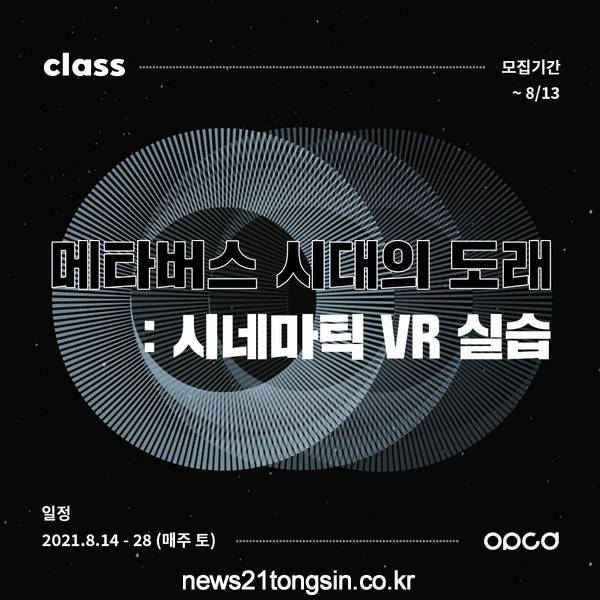 「메타버스 시대의 도래: 시네마틱 VR 실습」 클래스로 진행되는 이번 교육은 ▲메타버스 개념 및 VR·AR과의 상관관계 ▲나의 일상을 주제로 하는 360도 영상 촬영·편집 실습 ▲완성된 VR 영상 시사를 주제로 총 3회에 걸쳐 이어진다.