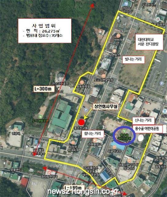 동구 대전대학로 상점가는, 대학로부터 용수골공원 일원에 그림자 조명, 불꽃조명, 일루미아트리 등 ‘빛’을 주제로 한 상권 특성화 사업을 추진한다.