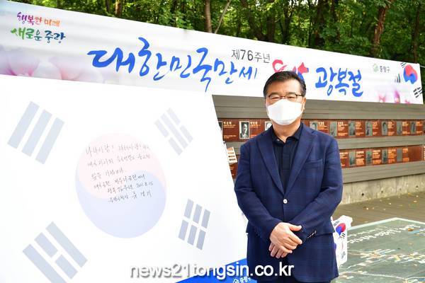 이날 류경기 구청장은 메시지보드의 첫 타자로 나서 ‘’나라사랑! 겨레사랑!하는 애국지사와 순국선열의 숭고한 뜻을 기립니다. 애국공원 망우리공원에서“라는 문구를 작성했다.