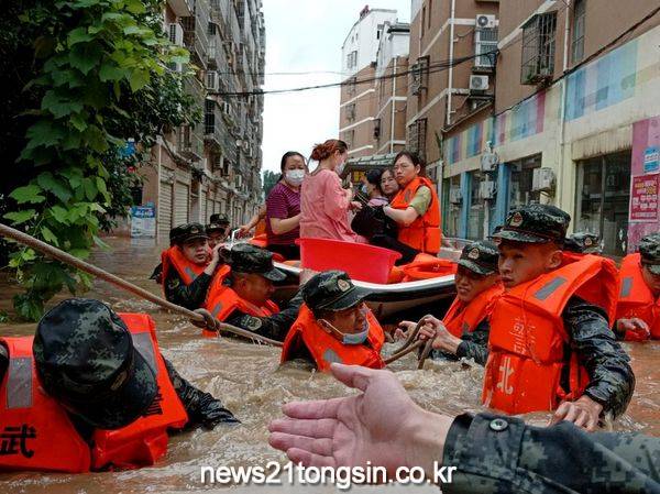 중국 중부 후베이성의 여러 도시에서 폭우가 쏟아지면서 21명이 사망하고 6000명이 대피한 것으로 알려졌다.