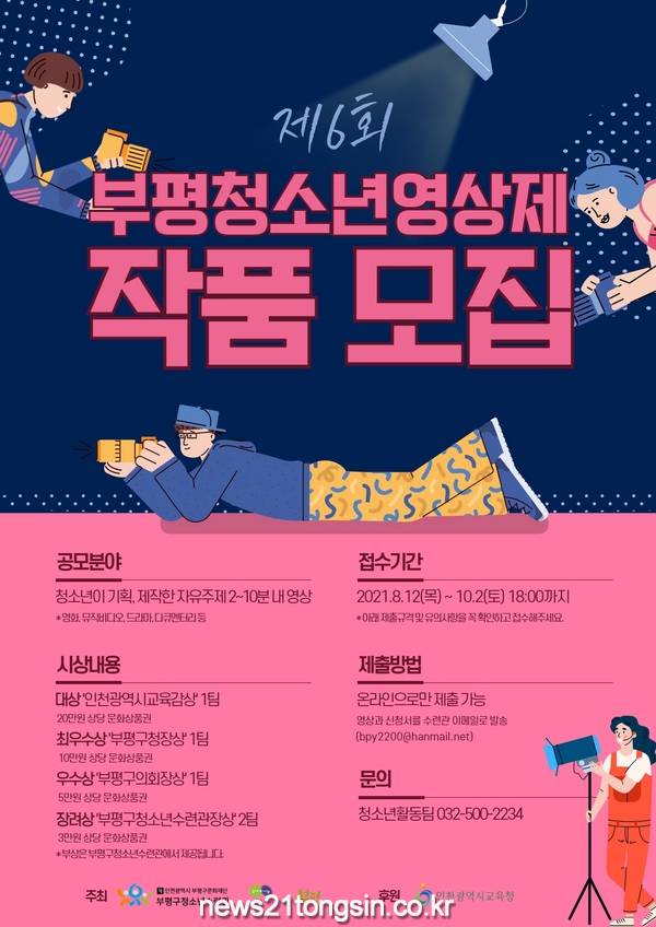부평구(구청장 차준택) 청소년수련관은 오는 10월2일까지 제6회 부평청소년영상제 상영 작품을 모집한다.