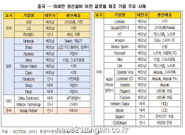 분석결과, ’18년 미․중 무역전쟁에 따른 미국의 對중국 수출규제를 회피하기 위한 중국 내 일부 외국인 투자의 이탈, 코로나19 과정에서 발생한 중국 내 생산기지 셧다운의 영향 등이 복합적으로 작용하여 글로벌 공급망의 아세안 시프트가 심화되고 있는 것으로 나타났다. ’16~’20년 기간 중 전 세계 對아세안 직접투자는 ’11~’15년 대비 30.4% 증가한 7,310억 달러를 기록하여 같은 기간 중 對중국 직접투자(6,989억 달러)를 추월하였다.
